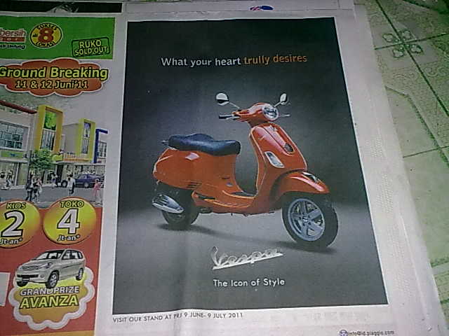 yang kesebelas : iklan vespa di surat kabar kompas tanggal 9 juni 2011, halaman 21